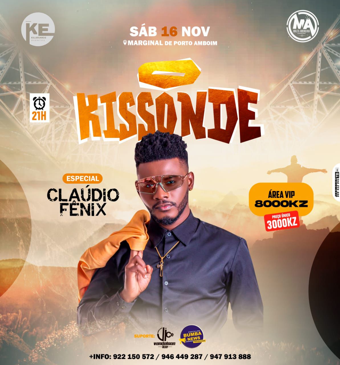 - O kissonde Especial Cláudio Fênix sábado dia 16 de novembro na marginal do Porto Amboim.