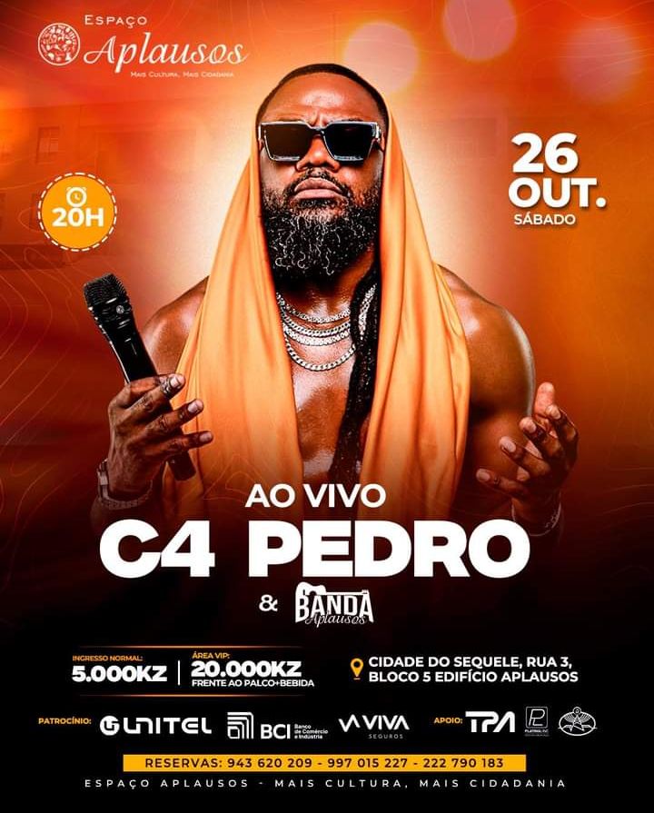 - Vou organizar um evento no dia 2025-04-26 com o tema Ao Vivo Com Yola Semedo no/a Espaço Aplausos, Rua 3, Bloco 5, Sequele clica no link para saber mais.