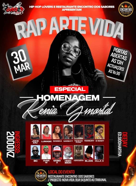 - Vou organizar um evento no dia 2025-03-30 com o tema Rap Arte Vida - Homenagem Kenia Ymortal no/a Restaurante Encontro dos Sabores clica no link para saber mais.