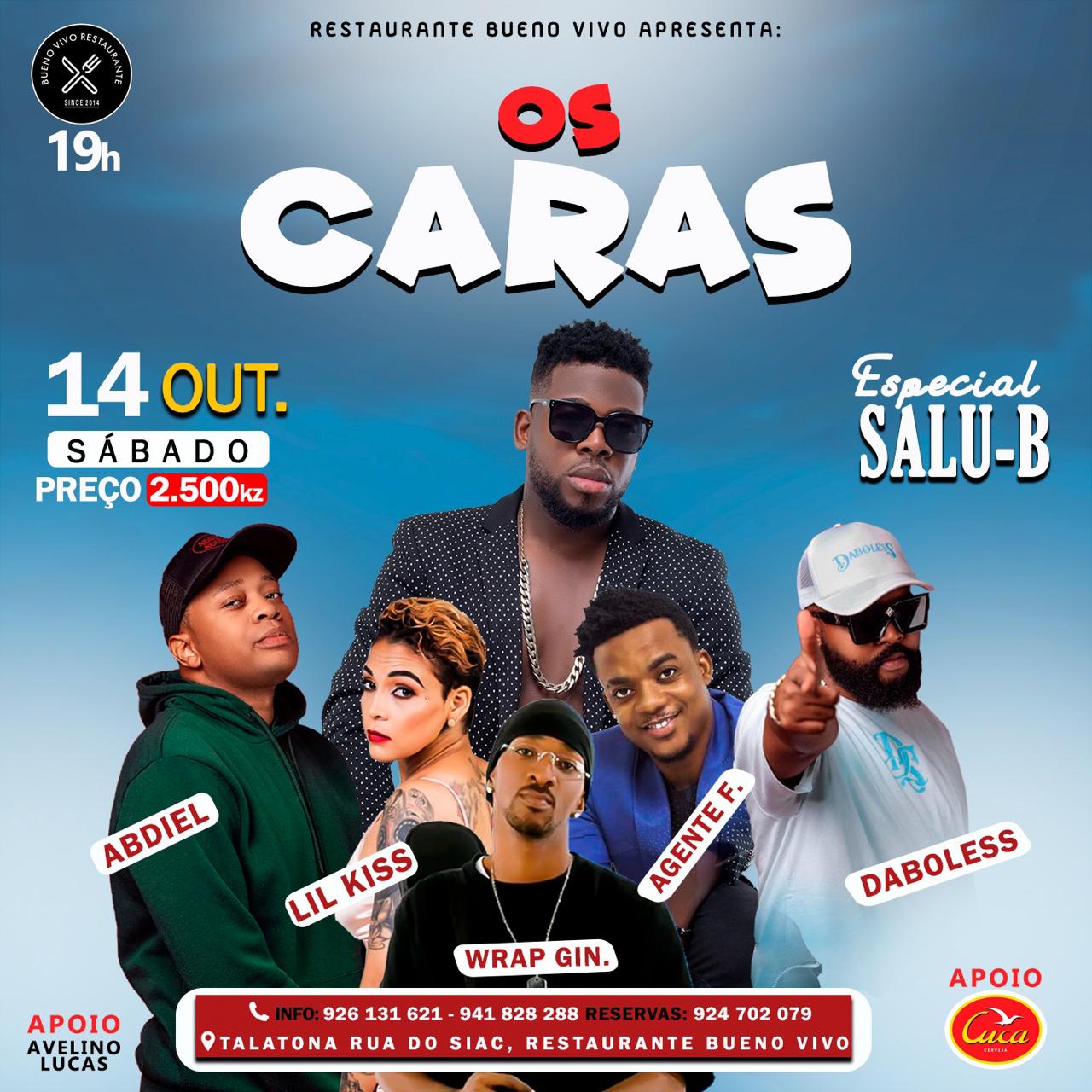 - Vou organizar um evento no dia 2023-10-14 com o tema Os Caras - Especial Salu - B no/a Bueno Vivo, Talatona clica no link para saber mais.