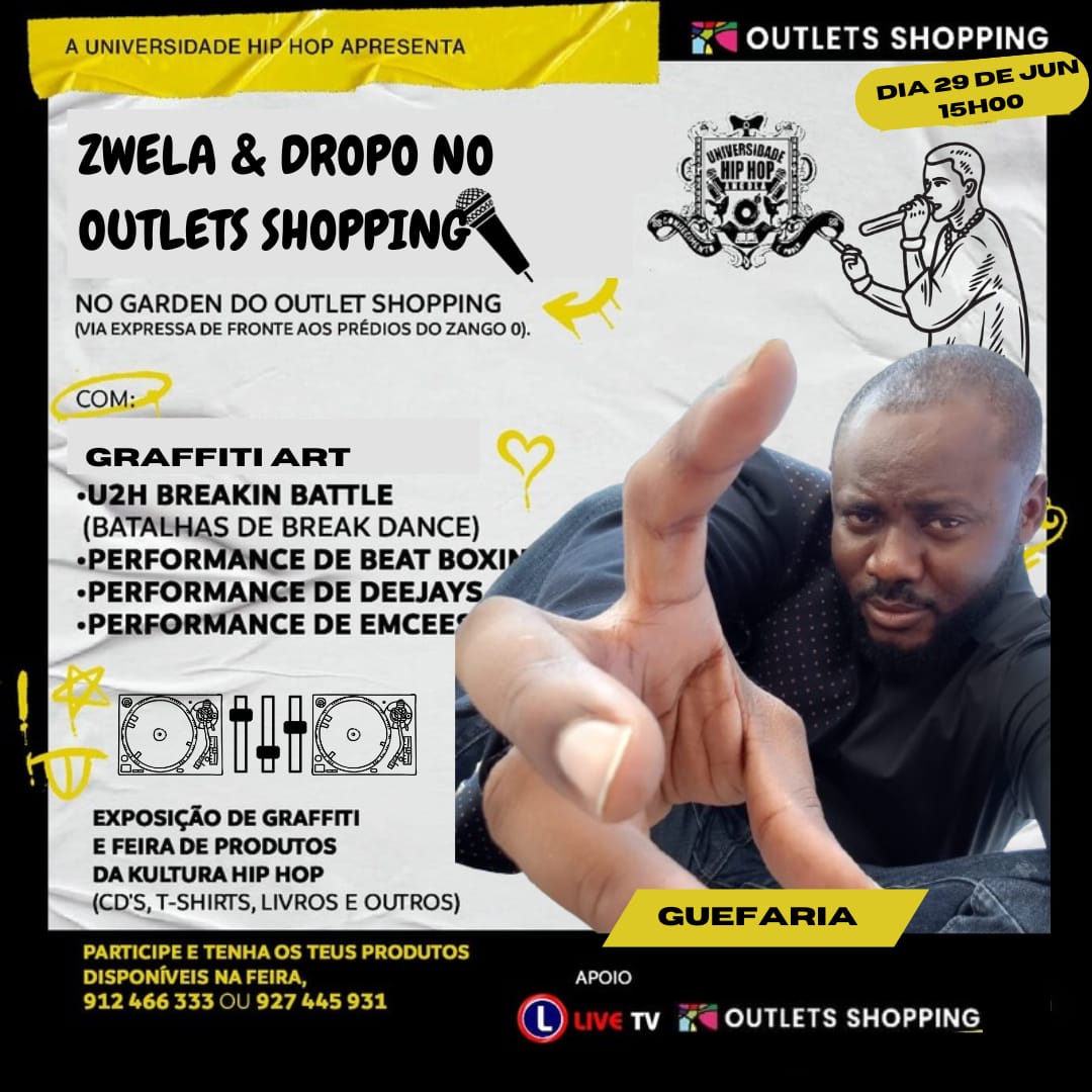 - Vou organizar um evento no dia 2024-06-29 com o tema Zwela & Dropo No Outlets Shopping no/a Outlets Shopping, Via Expressa clica no link para saber mais.