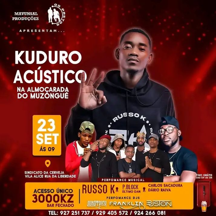 - Vou organizar um evento no dia 2023-09-23 com o tema Kuduro Acústico Na Almoçarada Do Muzongue no/a Sindicato da Cerveja, rua da liberdade, Vila Alice clica no link para saber mais.