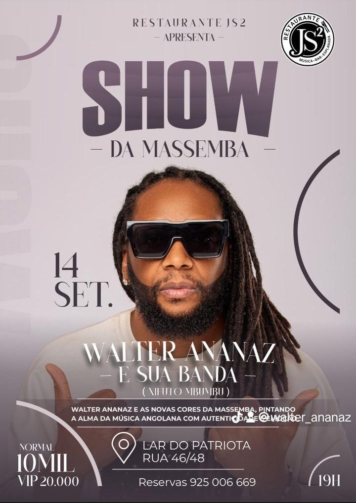 - Vou organizar um evento no dia 2024-09-14 com o tema Show da Massemba no/a JS2, Lar do Patriota clica no link para saber mais.