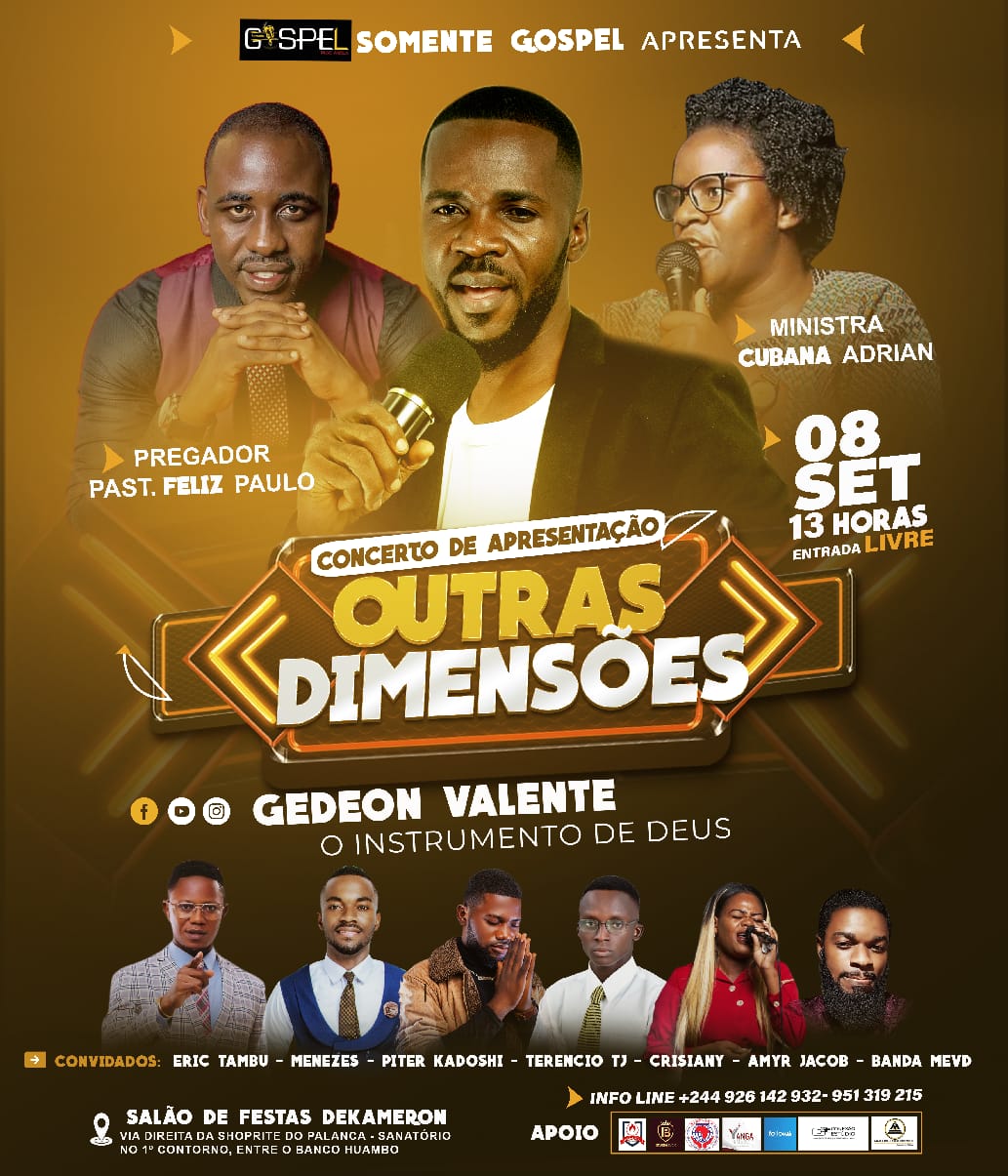 - Vou organizar um evento no dia 2024-08-08 com o tema Concerto de Apresentação Outras Dimencões no/a Salão de Festas Dekameron, Palanca clica no link para saber mais.